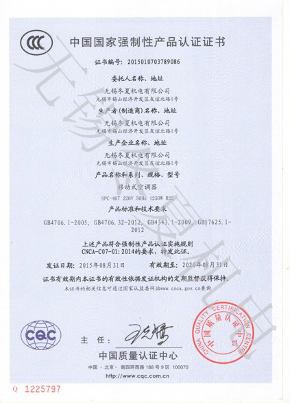 近日,爱游戏(ayx)体育官方网站的移动工业冷气机、暖风机产品7个型号取得了中国质量认证中心颁发的3C强制认证证书。